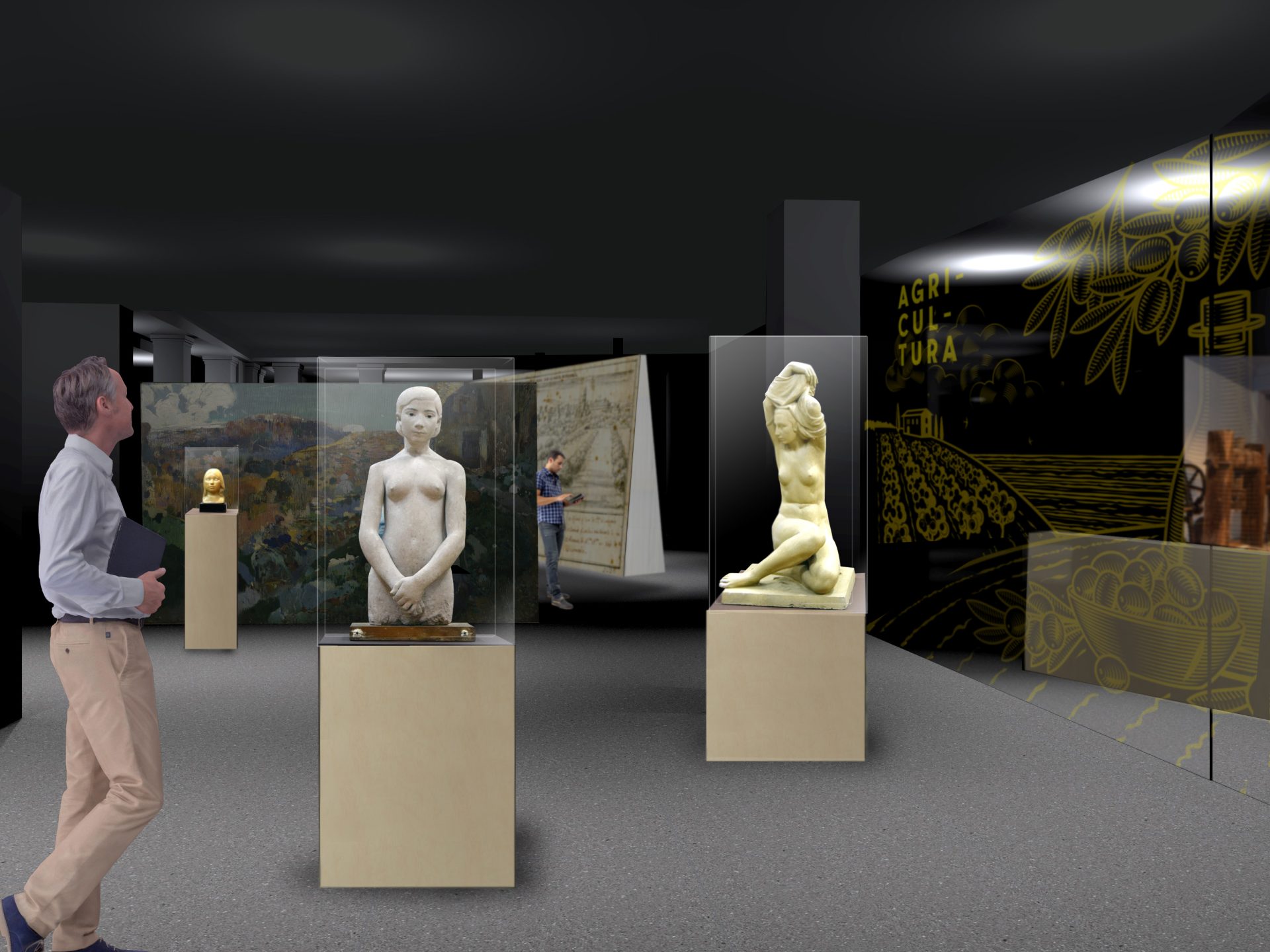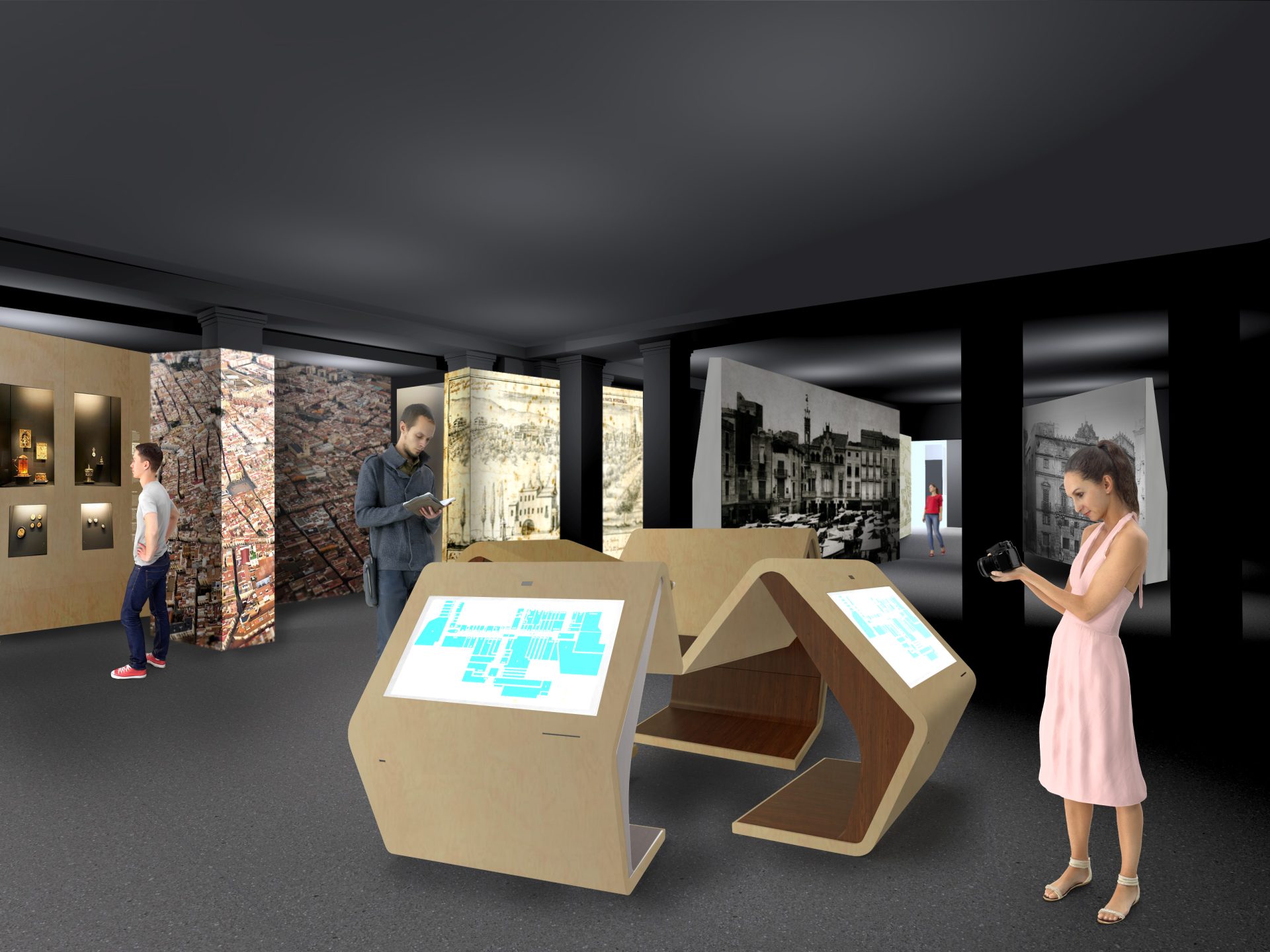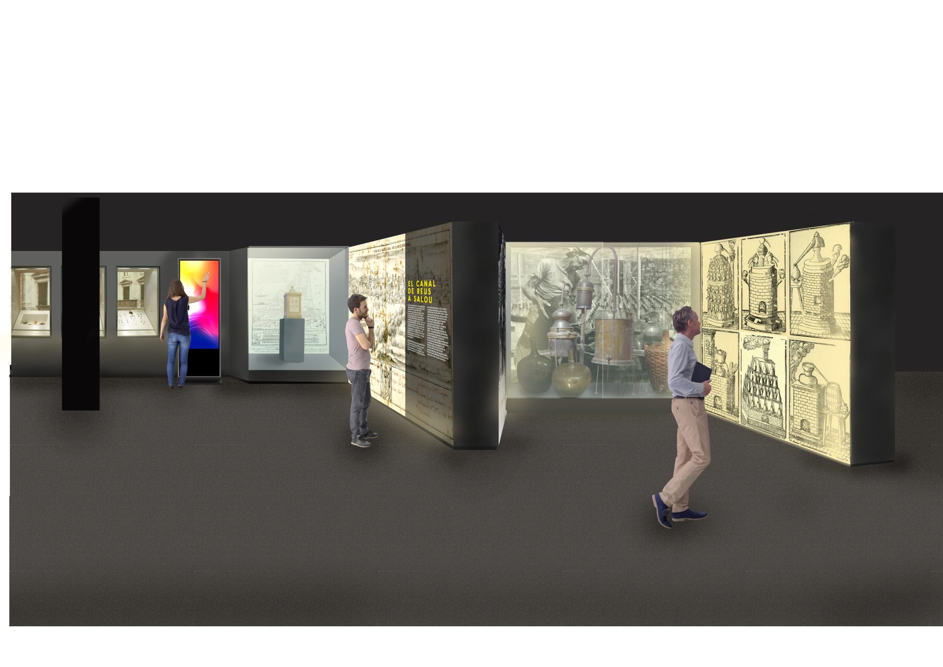 Pel que fa a l’àmbit expositiu, es va projectar un espai diàfan i de recorregut circular, pensat per a una museografia immersiva, amb la possibilitat de ser compartimentat segons les necessitats expositives de cada moment. Aquesta flexibilitat permetria acollir tant mostres temporals com col·leccions permanents amb criteris museogràfics actuals.